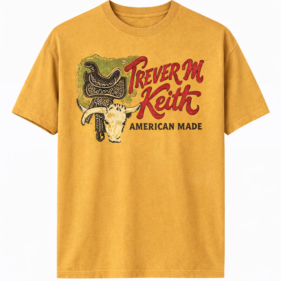 Trever M. Keith Cowpoke T-shirt on vintage mustard yellow